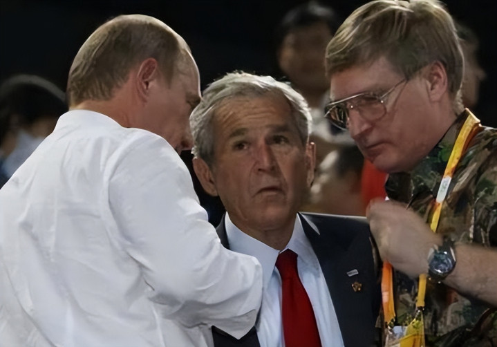 两人在共同出席2008年北京奥运会期间,小布什特意把普京拉到餐桌前,热情地聊着天。